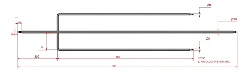 largo del tridente 90 cm material acero inoxidable