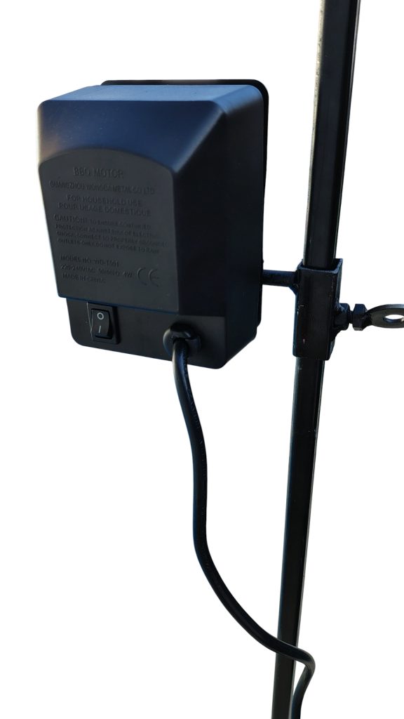 spiedo black de acero inoxidable funciona solo a 220 volts capacidad hasta 15 kg largo tridente 110 cm